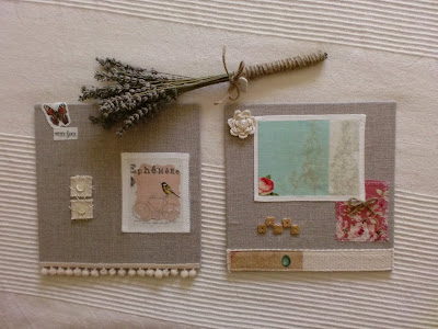 Composicion de cuadros con un tamaño de 20 X 20, forrados en lino, con fotos transferidas y telas lecien.